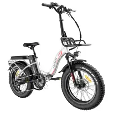 A Fafrees F20 Max elektromos kerékpár a legújabb fejlesztésekkel és kiváló teljesítménnyel készült, hogy a lehető legjobb vezetési élményt nyújtsa minden terepen. Ez a kerékpár nagy kapacitású akkumulátorral és erősebb motorral van felszerelve, amelyek lehetővé teszik a könnyed közlekedést aszfalton, földúton és akár hegyi terepen is. A sima kábelezés, az összecsukható váz, a lépésmentes keret és az első-hátsó csomagtartók, valamint a sárvédők és lábtartók mind hozzájárulnak a kényelemhez és a tartóssághoz. Az F20 Max-ot úgy tervezték, hogy megfeleljen a modern városi és vidéki közlekedési igényeknek, valamint az off-road kalandoknak egyaránt. A 500W-os kefe nélküli motor és a 48V 22,5Ah kapacitású Samsung akkumulátor hosszú hatótávolságot és kiváló teljesítményt biztosítanak. Az LCD kijelző könnyen olvasható és kezelhető, különféle adatokat jelenít meg, mint a sebesség, akkumulátor állapot, megtett távolság és sebességfokozat. Az összecsukható keret és kormány, valamint a pedálok megkönnyítik a szállítást és a tárolást, így ideális választás a napi ingázáshoz és a hétvégi kirándulásokhoz egyaránt. A 20×4.0″ méretű abroncsok kiváló tapadást biztosítanak különböző útviszonyok között, beleértve a havat, homokot, sarat és kavicsos utakat is. Az első és hátsó tárcsafékek, valamint a Shimano 7 sebességes váltó precíz és biztonságos vezérlést tesznek lehetővé. Az első és hátsó LED világítás biztosítja a láthatóságot és biztonságot nappal és éjszaka is. Az állítható első felfüggesztés és a rugós ülés tovább növelik a vezetési kényelmet, akár 150 kg-os terhelhetőséggel. A Fafrees F20 Max elektromos kerékpár modern és praktikus választás mindenki számára, aki megbízható és sokoldalú közlekedési eszközt keres.