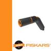 A Fiskars állítható fejű locsolópisztolya ergonomikus kialakítású és kényelmes SoftGrip™ markolattal rendelkezik. Az öntözőfej könnyen elforgatható az erős sugárról az öblítő mintázatra, a hüvelykujjal kezelhető be/kikapcsolási áramlás-szabályozó fokozatmentesen állítható. Univerzális csatlakozója minden típusú csatlakozóhoz és más márkákhoz is illeszkedik.