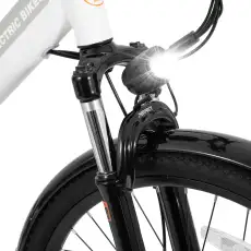 A kerékpár első és hátsó LED világítással van felszerelve, ami fokozza a láthatóságot és a biztonságot rossz fényviszonyok között. Az erős fényű LED lámpák biztosítják, hogy a kerékpár jól látható legyen más közlekedők számára, valamint segítik a kerékpárost az úttesten való navigálásban. A világítás hatékonysága jelentősen növeli az éjszakai kerékpározás biztonságát, így bátran közlekedhetünk sötétedés után is.