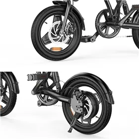 Hatótáv 20-40 km közötti hatótávot kínál, az üzemmódtól és a használat intenzitásától függően. Ez elegendő a napi ingázáshoz vagy kisebb kirándulásokhoz anélkül, hogy gyakran tölteni kellene az akkumulátort. Töltési idő Az akkumulátor teljes feltöltése 4-5 órát vesz igénybe. Ez lehetővé teszi, hogy a kerékpárt egy éjszaka alatt feltöltse, és reggel készen álljon a használatra. A rövid töltési idő kényelmes és időtakarékos megoldást kínál. Kerék/Gumi 14 hüvelykes, kopásálló pneumatikus gumik biztosítják a stabil haladást különféle útfelületeken. Ezek a gumik jó tapadást nyújtanak nedves és száraz körülmények között is, miközben csillapítják az úthibák okozta rázkódásokat. Kijelző LCD kijelző, amely mutatja a sebességet, az akkumulátor töltöttségét és az aktuális üzemmódot. Az egyszerűen kezelhető kijelző lehetővé teszi a felhasználó számára, hogy mindig tisztában legyen a kerékpár állapotával. Kompakt mérete ellenére jól látható, még erős napfényben is.