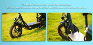 - 14 hüvelykes Szélesített Légpárnás Gumi: A KuKirin C1 Pro gumikerekekkel rendelkezik, 2,5 hüvelykes szélesített abroncsokkal, különleges futófelületi kialakítással, amely növeli a futófelület és az útburkolat közötti súrlódást, csökkenti a féktávolságot, és kényelmesebbé és simábbá teszi az utazást.