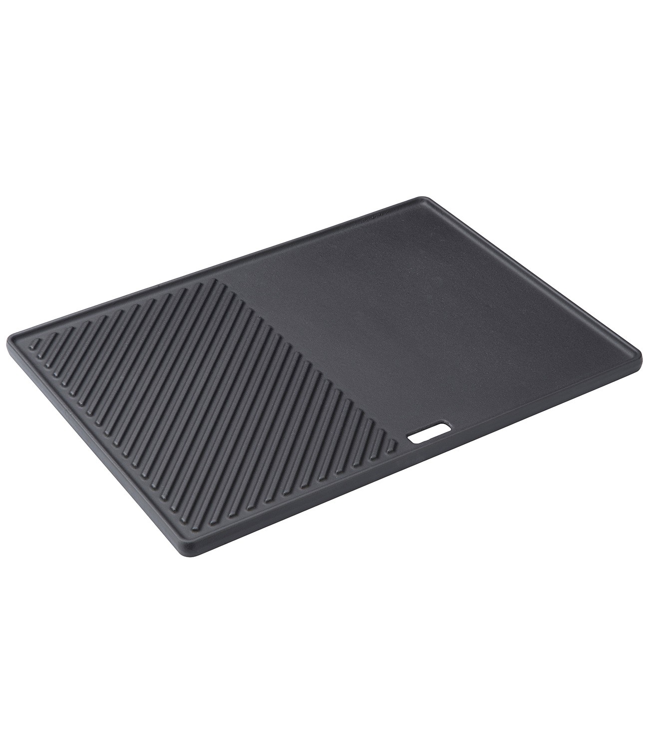 A Landmann Öntöttvas Grill Lap TRITON 3-4 egy kiváló minőségű, tartós és sokoldalú kiegészítő a grillezés szerelmeseinek. Az öntöttvas anyagának köszönhetően hosszú élettartamú és ellenálló, így garantáltan hosszú ideig szolgálja majd a grillezés örömeit. A lap egyik fele sima, míg a másik fele félig bordázott, így lehetőséget biztosít különböző ételek elkészítésére, legyen szó húsokról, zöldségekről vagy akár palacsintáról. A lefolyó lyuknak köszönhetően a felesleges zsiradék könnyedén eltávolítható, a perem pedig megakadályozza annak a grillről való lefolyását. Kompatibilis a TRITON 3.x és 4.x grillekkel, így könnyedén integrálható a meglévő grillező rendszerbe.
