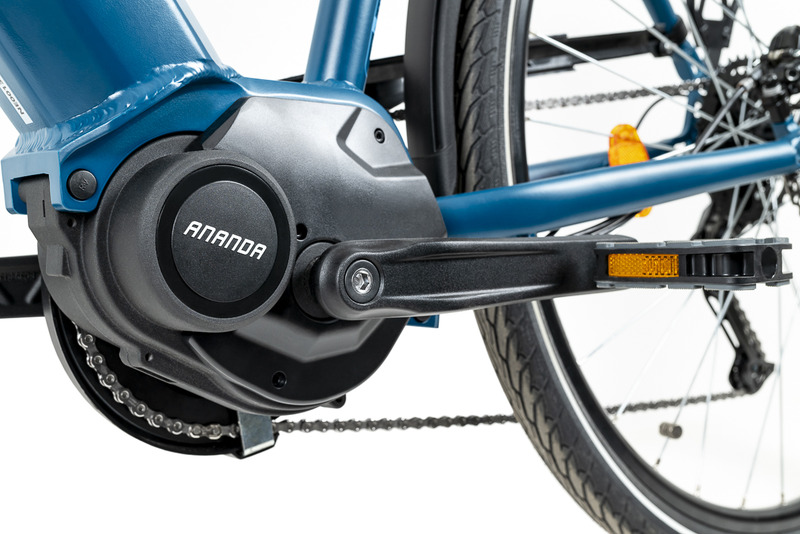 A gép szíve az Ananda M60BBTR középmotor, amely a 250 W-os teljesítmény mellett 70 Nm-es nyomatékkal segíti a pedálozást. A nyomatékszenzorral ellátott, 5 fokozatban állítható rásegítés minden helyzetben optimális támogatást biztosít, természetes pedálozási élményt nyújtva.