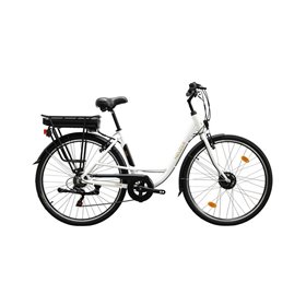 - Kerékméret és gumiabroncsok: A kerékpár stabil kerekekkel és városi mintázatú gumiabroncsokkal rendelkezik, amelyek kiváló tapadást és stabilitást biztosítanak az aszfalton.