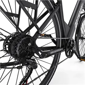 A kerékpár a világszerte elismert Shimano 7 sebességes váltórendszerével van felszerelve, amely precíz és gyors fokozatváltást tesz lehetővé. A hét különböző sebességfokozat segít abban, hogy mindig az ideális pedálfordulatot tarthassa, függetlenül attól, hogy sík úton halad vagy emelkedőre kapaszkodik fel. A Shimano váltó megbízhatósága legendás, így Önnek csak az útra kell koncentrálnia a váltások helyett. A kormányon található váltókar segítségével könnyedén és intuitív módon válthat a fokozatok között. Ez a rendszer tökéletesen kiegészíti az elektromos motor erejét a hatékony haladás érdekében.