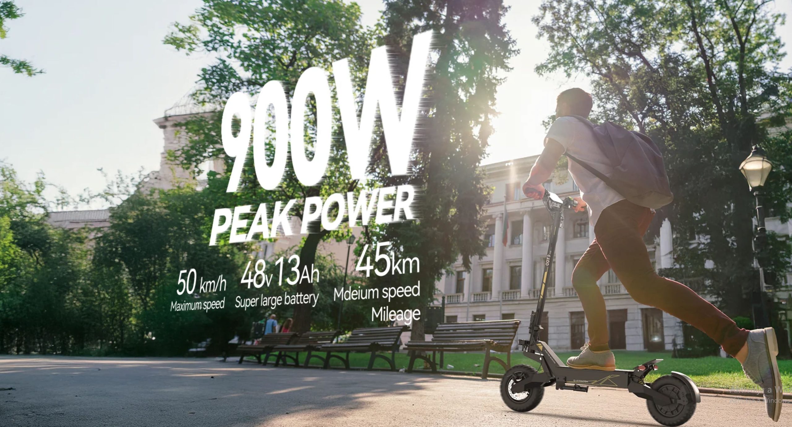 A nagy hatékonyságú motor dinamikus gyorsulást biztosít, miközben energiatakarékosan működik. A 900 W-os csúcsteljesítmény még meredekebb emelkedőkön is könnyedén felrepít. A többfokozatú üzemmódok (Eco, Normál, Sport) segítenek testre szabni a tempót és a fogyasztást. Mindez halk működéssel és precíz irányíthatósággal társul.