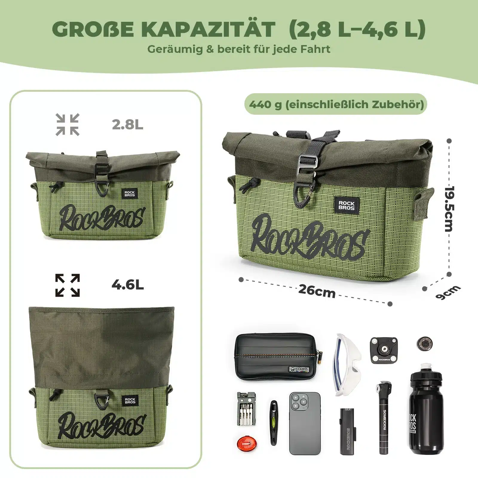 ROCKBROS Első kerékpártáska 2,8-4,6 L