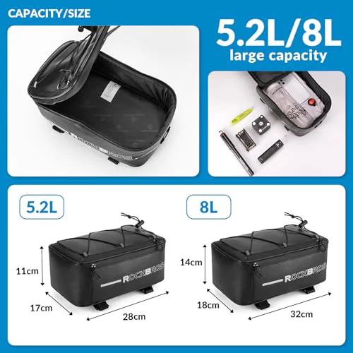 Ez a csomagtartó táska 5,2L és 8L opciókban kapható. A táska több rekesszel rendelkezik. A kerékpártáska elegendő helyet biztosít a fényképezőgépének, ruháinak és napszemüvegének. A felső cipzáras zseb pénztárcának, kulcsoknak, mobiltelefonnak stb.