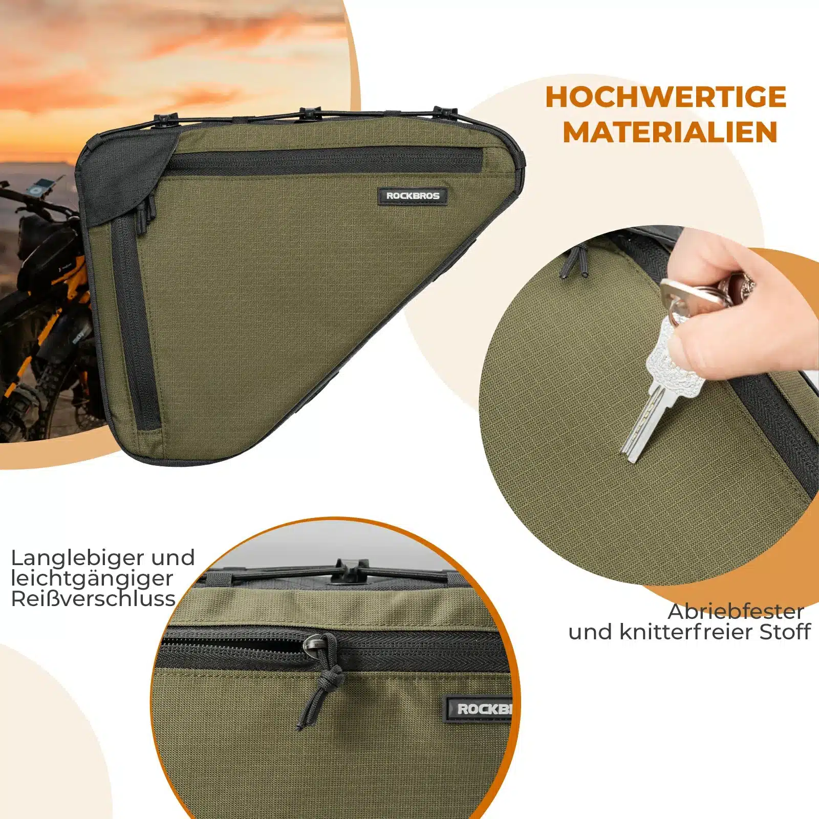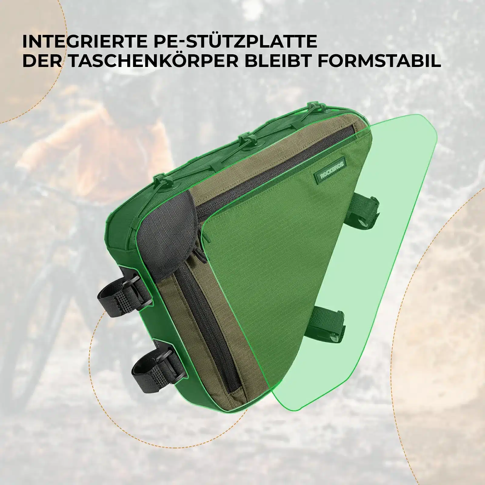 - Gyors és stabil felszerelés: Vágásra alkalmas tépőzáras pántokkal és reteszelő rendszerrel a táska gyorsan és szerszámok nélkül felszerelhető. A 3-pontos rögzítőrendszer stabilitást biztosít még egyenetlen terepen is. Karcálló védelemmel van ellátva a váz számára, így ideális hegyi kerékpárokhoz és gravel biciklikhez