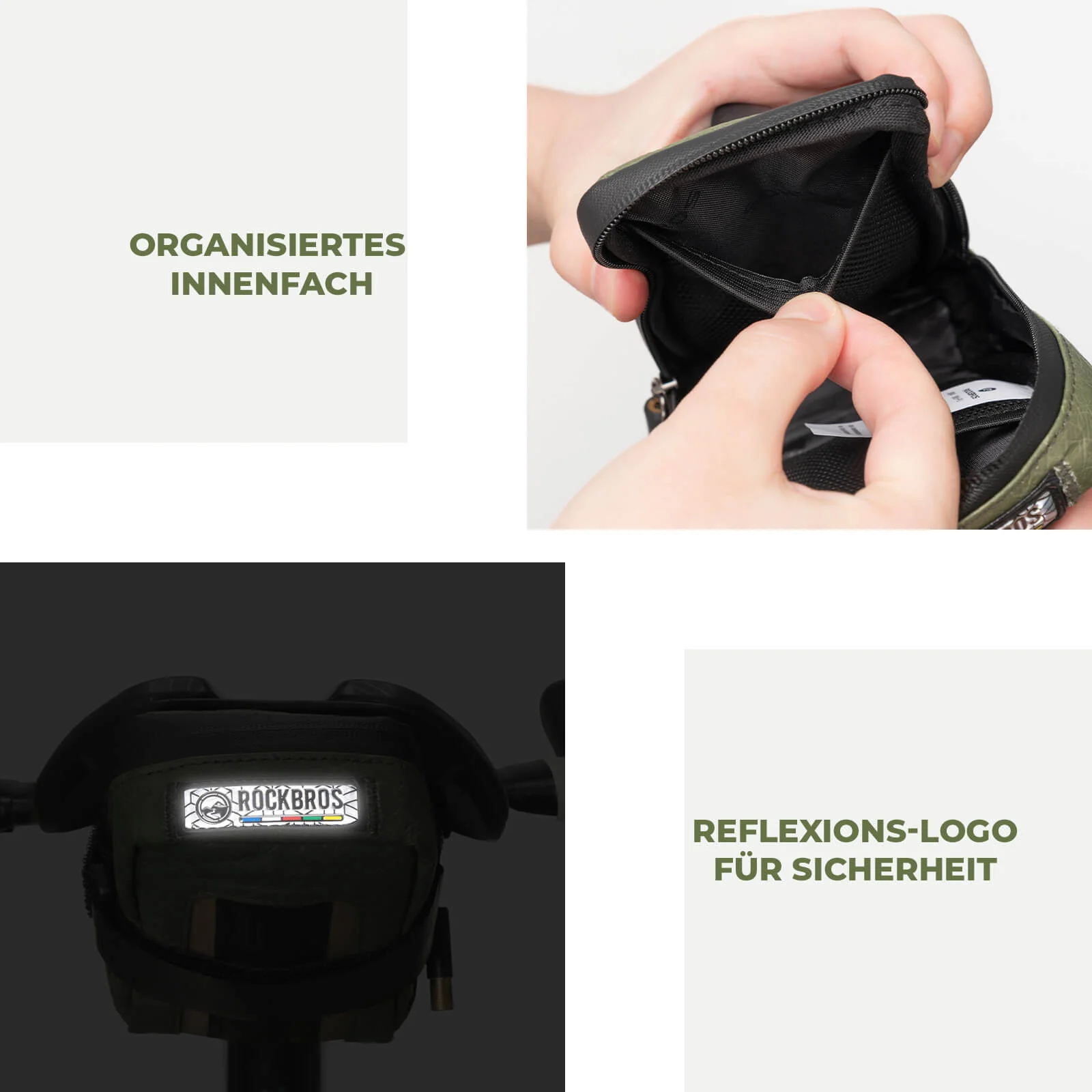 Erős tépőzárral közvetlenül a nyeregkeretre rögzíthető – villámgyorsan felszerelhető és levehető.