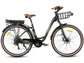 Váz: 6061-es alumíniumötvözet A kiváló minőségű alumíniumötvözet váz rendkívül tartós, ellenáll az időjárás viszontagságainak, és könnyű kezelhetőséget biztosít. Ez az anyag kiváló korrózióállóságot nyújt, ami hosszú élettartamot garantál. Az aerodinamikus kialakításnak köszönhetően a kerékpár nemcsak praktikus, hanem esztétikus is. Maximális sebesség: 35 km/h Ez a végsebesség gyors közlekedést tesz lehetővé a városi forgalomban. A dinamikus gyorsulás a motornak és a sebességváltónak köszönhetően élvezetes és hatékony. Ideális azok számára, akik időt szeretnének spórolni anélkül, hogy a biztonságukat kockáztatnák. Maximális terhelhetőség: 150 kg A nagy teherbírás lehetővé teszi, hogy a kerékpár nehéz csomagokat vagy akár egy második személyt is biztonságosan szállítson. Ez a tulajdonság kiváló választássá teszi a mindennapi használatra. A masszív kialakítás révén a kerékpár stabilan tartja az egyensúlyt terhelés alatt is. Motor teljesítménye: 500 W Ez a nagy teljesítményű motor garantálja a könnyű haladást akár meredek emelkedőkön is. Az egyenletes gyorsulás és a csendes működés kényelmes használatot biztosít. Az erőteljes motor hosszan tartó megbízhatóságot kínál.