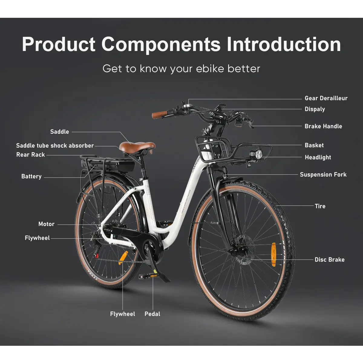 Első és hátsó LED lámpák: Az erős LED-lámpák kiváló látási viszonyokat biztosítanak éjszaka és rossz időjárási körülmények között is. Az első lámpa széles szögben világít, míg a hátsó lámpa figyelmezteti a mögötted haladókat. Ez növeli a biztonságot és a láthatóságot bármilyen időben. Hátsó csomagtartó és első kosár: A hátsó csomagtartó és az első kosár praktikus megoldást kínál kisebb csomagok, táskák vagy bevásárlás szállítására. Az erős és stabil kialakítás biztosítja, hogy a szállított tárgyak biztonságban maradjanak. Ezek a kiegészítők megkönnyítik a mindennapi teendők elvégzését. Ajánlott magasság: 165–198 cm Ez a széles magasságtartomány lehetővé teszi, hogy a kerékpár sokféle testalkathoz igazodjon. Az állítható ülés és kormány biztosítja, hogy kényelmesen használhasd. A kialakítás a különböző magasságú felhasználók számára is optimális kényelmet nyújt.